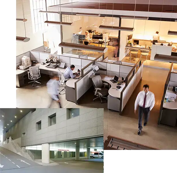 Bay Lighting removes, replaces, and modernizes lighting for commercial office buildings, healthcare facilities, educational campuses, parking garages, exterior areas, and government or municipal buildings. While each environment benefits in different ways, with connected lighting systems all gain improved control, increased efficiency, and scalable lighting infrastructure that can adapt as building needs evolve.